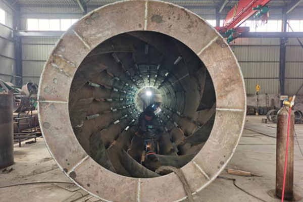 鐵屑通過傳送帶送入烘干機(jī)后,與熱源燃燒產(chǎn)生的熱空氣接觸,此時冰塊融化或者水分會逐漸蒸發(fā),由于烘干機(jī)內(nèi)設(shè)置有揚料板,會在筒體轉(zhuǎn)動的作用下不斷將鐵屑帶起,所以會加快水分蒸發(fā)的過程,使鐵屑快速干燥,干燥后的鐵屑從烘干機(jī)尾部落下由輸送帶送至倉庫中,烘干產(chǎn)生的水蒸氣則被引風(fēng)機(jī)抽出烘干機(jī)外排放,由于該機(jī)烘干過程中主要是鐵屑和水分,幾乎不產(chǎn)生其他廢氣,從節(jié)省成本方面考慮,可以不設(shè)置除塵器,除非有嚴(yán)格的要求時,再根據(jù)烘干機(jī)型號配備相應(yīng)的除塵器。